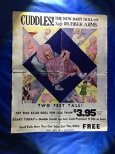 Vintage 1929 "Cuddles The New Baby Doll" Ideal Toy Co. Poster Advertising 21 x17