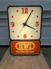 Large HWI Hardware Wholesalers Advertising Store Light-Up Clock Sign Vintage