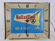 Vintage Working 1950's BALLANTINE Beer Lighted Bar Advertising Wall Clock Sign