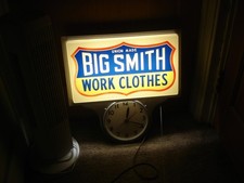 Vintage AWESOME Big Smith Work Clothes Lighted Advertising Wall Clock Sign