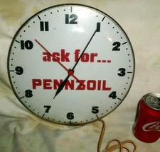 VINTAGE PENNZOIL CLOCK USA LIGHT LAMP HOME WALL PAM ART ADVERTISING DISPLAY SIGN