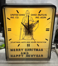 Vintage Lighted Clock/Sign United/Ohio Insurance Co. Advertising WORKS