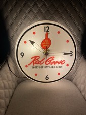 Red Goose Shoes Vintage Lighted Advertising Wall Clock Sign - 1950’s - WORKS 17”