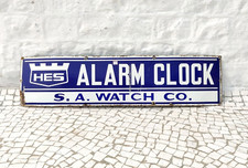 Vintage HES Alarm Clock S A Watch Co. Advertising Enamel Sign Board Rare EB499