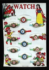 Vintage Snow White & 7 Dwarfs Toy Watch Store Display Card Old Store Stock Japan