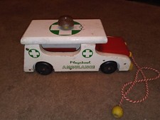 Vintage Playskool Wooden Toy Ambulance 1950s-60s? Rare