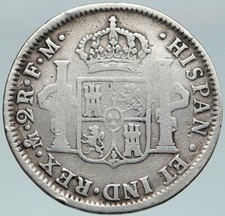 1779 MO FM MEXICO SPAIN King CHARLES IV ANTIQUE Silver Real Mexican Coin i116127