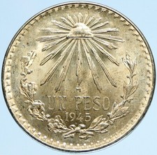 1945 Mo MEXICO Large Eagle Liberty Cap Mexican Antique Silver 1 Peso Coin i97972