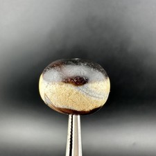 Tibetan Kubera Wealth God Old Agate Dzi Pendant, Odd Size Silkworm Line. ✨