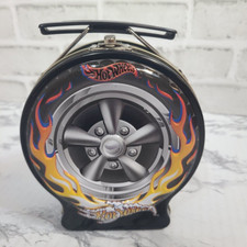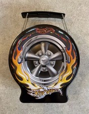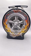 Hot Wheels 2002 Small Tin Collectors Tim With Handle Tire Flames Metal