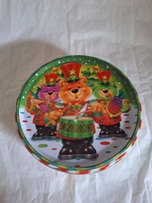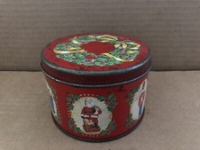 Vintage CHRISTMAS Round Tin SANTA CLAUS Stocking Toy Soldier Drum Teddy Bear