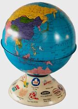 Vintage Deco 1930s Ohio Art Company Tin Litho Airplane Ad Toy Globe Bank (B)