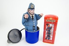Vintage Police lot of 2 Spring Loaded Toy Russel Stover Telephone Booth Tin