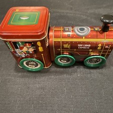 Vintage Toy Land Express Train Collectible Empty Metal Tin with Moving Wheels