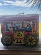 Vintage Tin Toy Stagecoach With Rolling Wheels With Lid