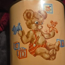 Vintage Tin with Teddy Bear and Toy Blocks Design, Beige Brown Red Blue