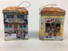 2 TIN ORNAMENT Metal box Nickis Toy store /General Store Collectible