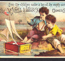 Antique Tin Can Toy Boat Flag Libby McNeill Canned Meat Advertising Trade Card