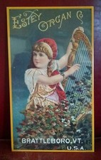 ESTEY ORGAN Harp Girl trade card Advertising on Vintage Metal Sign