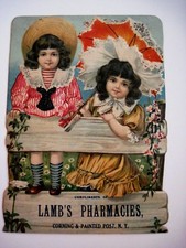 Large Victorian Die Cut Advertising Sign for "Lamb"s Pharmacies" w/ Two Girls *