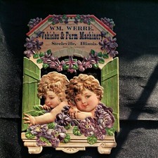 Antique Victorian Paper Advertising Sign Angels WM. Werre Vehicles Farm Mach