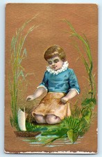 Advertising TRADE CARD Young Child Playing with Toy Boat