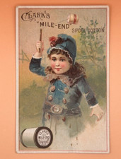 1887 Childs TOY Clark's Cotton SEWING THREAD Victorian Advertising Trade Card