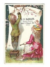 Old Trade Card HN Harbach Picture Frames Philadelphia Boy Girl Advertising Sign