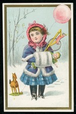 C 1890's ADVERTISING WOOLSON SPICE CO CHRISTMAS GIRL TOY DREAM TRADECARD