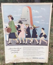 Vintage Mid Century American Airlines Advertising Poster Sign