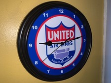 United Airlines Airport Pilot Stewardess Man Cave Advertising Clock Sign