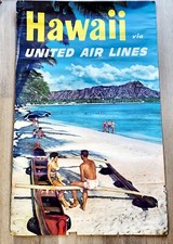 1960s United Airlines Advertising Poster -Diamond Head, Hawaii - Vtg Original
