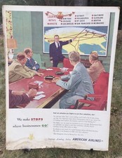 Vintage Mid Century American Airlines Advertising Poster Sign Artist JOHN FALTER
