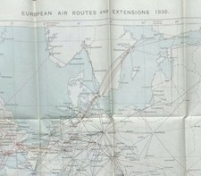 EUROPEAN AIR ROUTES & EXTENSIONS 1936 LARGE VINTAGE AVIATION AIRLINE MAP