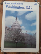 Vintage 1970’s-80’s American Airlines ORIGINAL Poster WASHINGTON DC