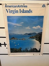 Vintage American Airlines Virgin Islands Travel Poster 40" X 30" 1970"s RARE