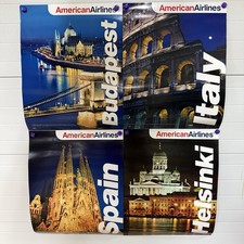 Lot of 4 American Airlines Travel Posters Italy Spain Budapest Helsinki 22”x28”