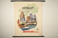 Vintage Original Authentic c1950s American Airlines Detroit Travel Poster