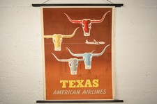 Vintage Original American Airlines Texas Travel Poster Longhorn Oil Rigs c1953