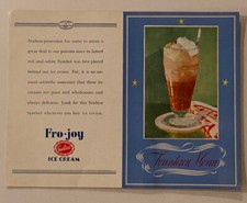 Vintage Antique Soda Fountain Menu Fro-Joy Sealtest Unused - Chocolate Ice Cream