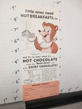HOT CHOCOLATE 1950s milk bottle collar cartoon bear dairy advertising paper