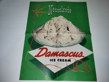 Damascus Dairy Paper Sign Advertising Nesselrode Christmas Ice Cream Poster