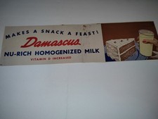 Damascus Dairy Paper Sign Advertising Nu-Rich Homogenized Milk Vitamin Enriched