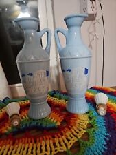 VTG J. Beam 2 Decanters Grecian Urn Blue Milk Glass Plato Aristotle 1961 MCM