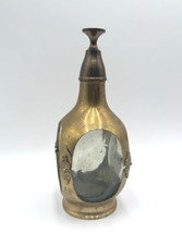 Brass Encased Glass Decanter With Shot Glass Lid Non King Vintage