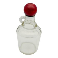 Vintage 5" Clear Pressed Glass Bottle with Small Handle and Wooden Screw Cap