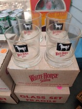 Vintage 1960 White Horse Cellars Scotch glass (set of 4) Black/Red/White version