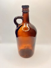 Vintage Amber Glass Bottle, One Full Quart, with Design and Original Lid