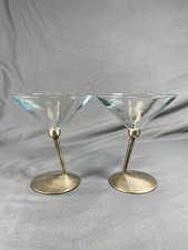 Vintage Set Of 2 Glass/metal Beefeaters Gin Slant Stem Martini Glasses