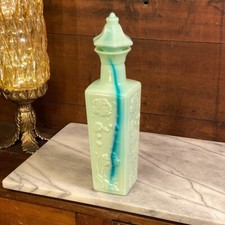 Jim Beam Liquor Bottle Slag Glass Pagoda Green Blue Jadite Milk Glass Vintage